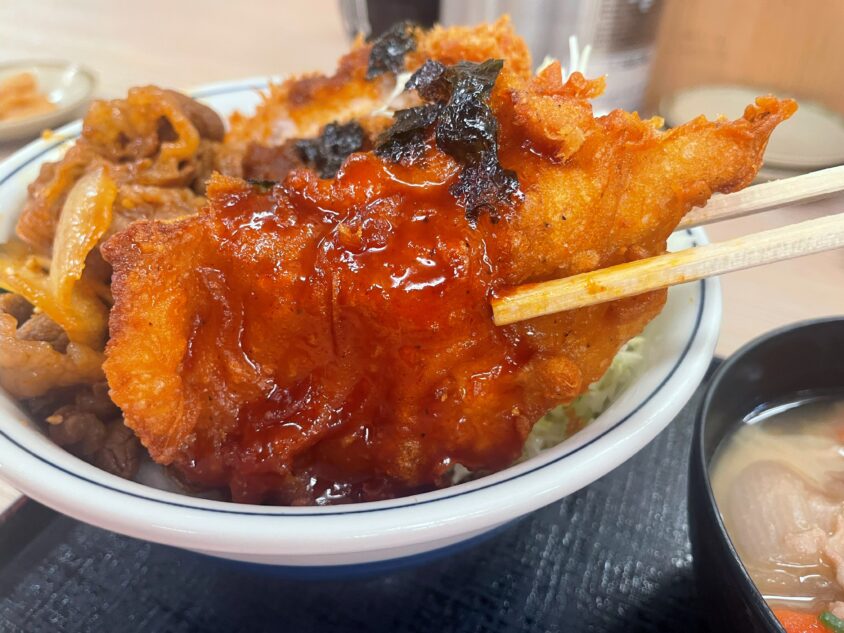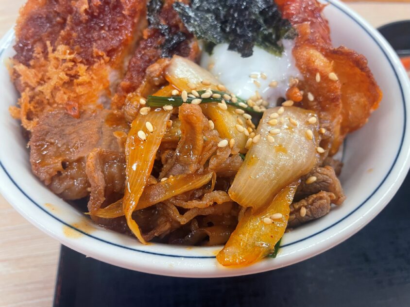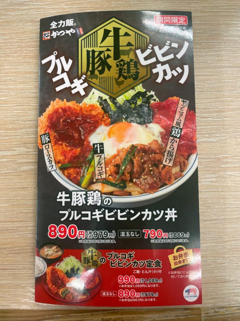 今回は、2025年10月10日に発売されたばかりの期間限定メニュー「牛豚鶏のプルコギビビンカツ丼」を実食。