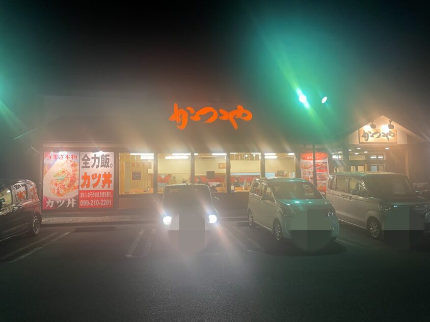 夜でも迷わない、オレンジ看板が目印の「かつや」