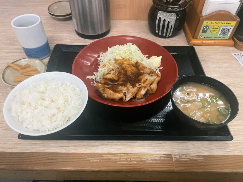 でも、実際に食べてみると、やわらかい豚肉、甘辛でコクのあるタレ、しっかり盛られた定食一式。