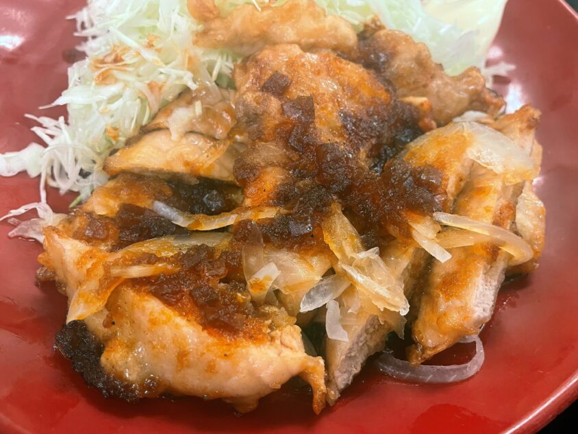 鉄板ではなく皿提供ですが、このタレの照りと豚肉の厚みで、食欲は一気にMAXです。