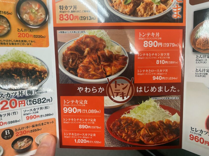 今回の新メニューは、かつや らしく、定食・丼ともに選択肢がしっかり用意されています。
