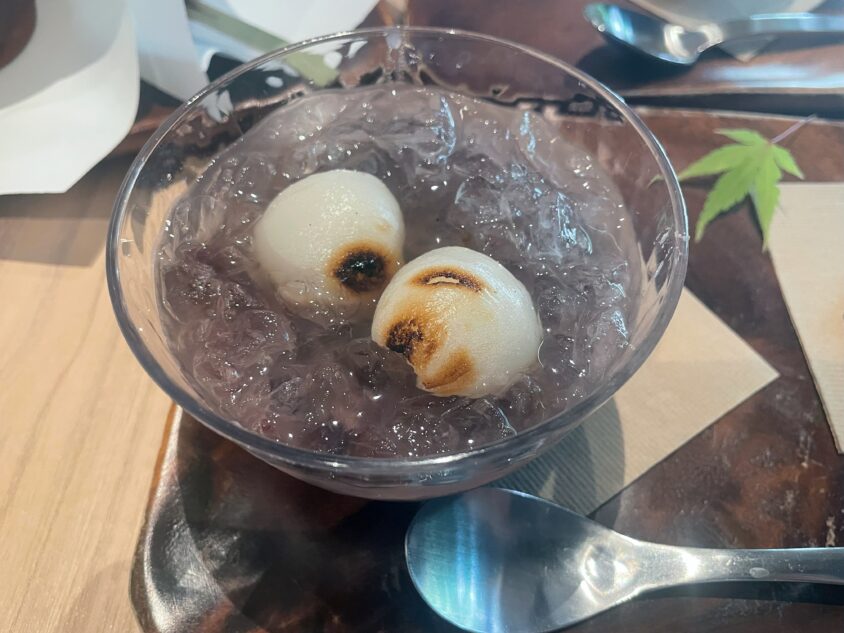 大きめの器にクラッシュされた氷、上には香ばしく炙られた白玉が二つ鎮座。