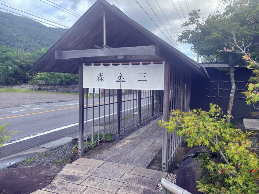 お店の正面には、白地にシンプルな文字で「森三」と書かれた暖簾が掛かり、和の趣が漂う門構えが出迎えてくれます。