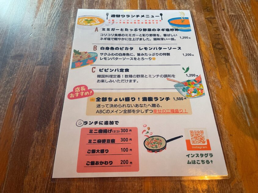 「ちいさな台所 名山」のランチタイム、メニューを開いた瞬間からもう心が踊ります。