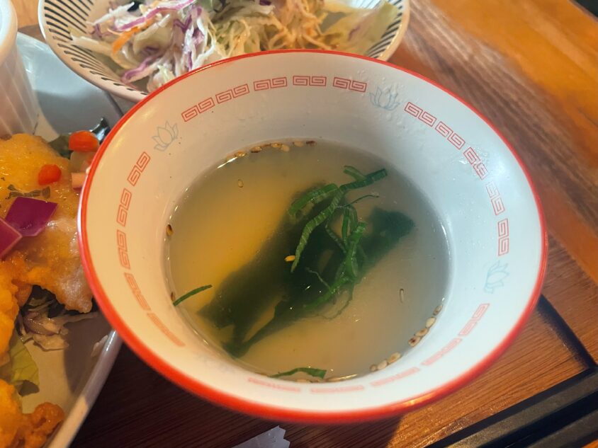 鶏ガラスープに、ごま&わかめ入りで、食事の締めにもピッタリ。