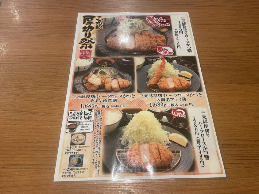 数量限定メニューもあり、特に「厚切りフェア」はとんかつ好きにはたまらない響き。