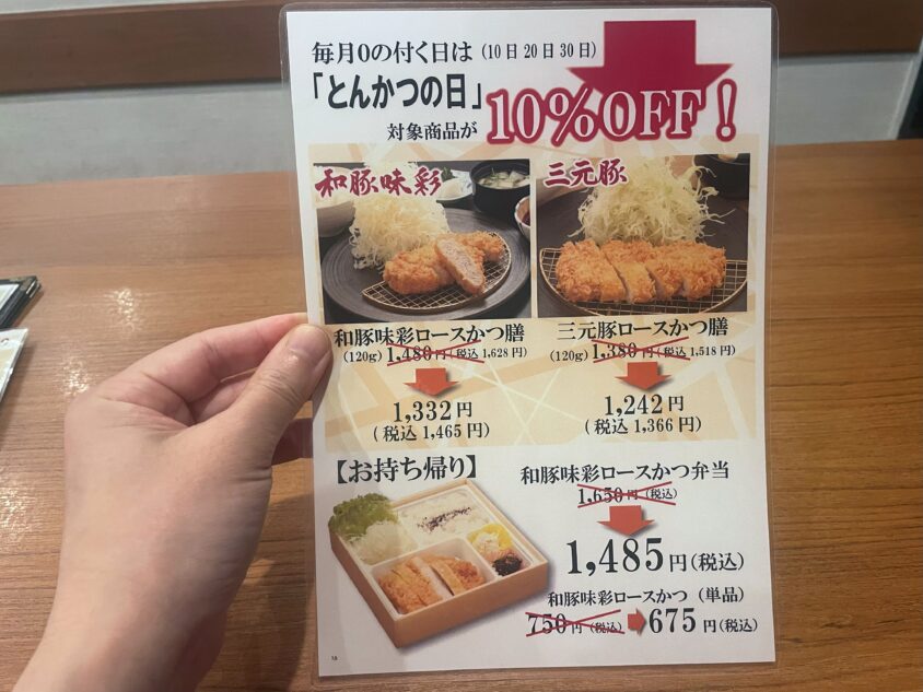 毎月10日・20日・30日は「とんかつの日」で対象メニューが10%オフ