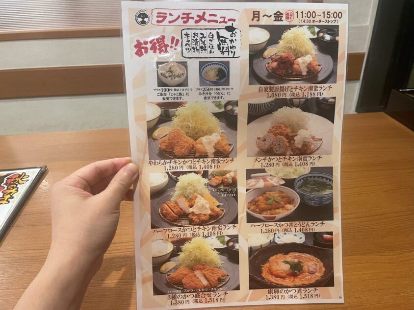 ・ハーフロースかつとカツ丼ランチ 1,280円(税込1,408円)など
