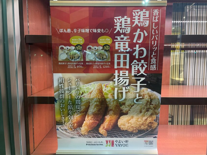 仕事終わりの夜、ふと立ち寄った「やよい軒」で出会った、新メニュー「鶏かわ餃子と鶏竜田揚げの定食」。