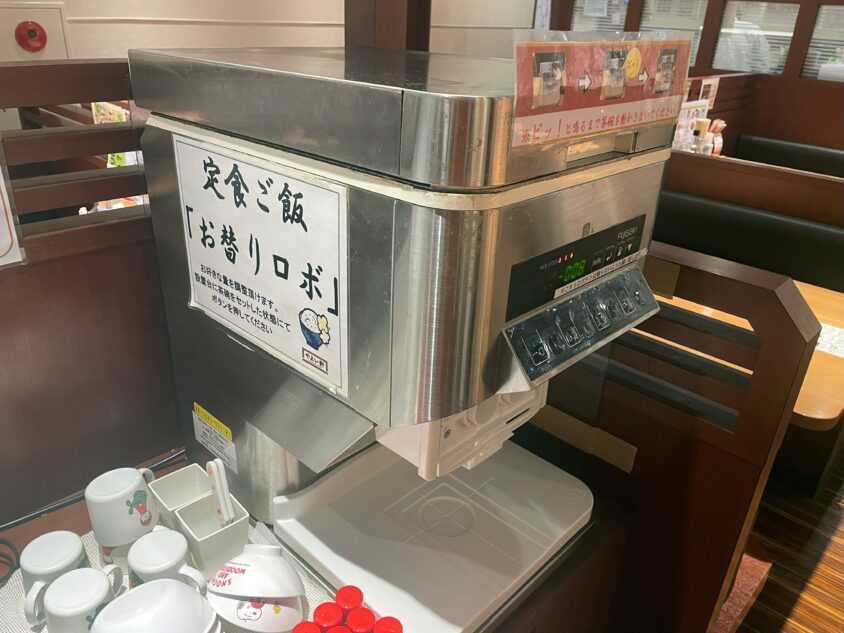 やよい軒ではなんと、自分でお替わりができる定食ご飯 お替わりロボが設置されています!
