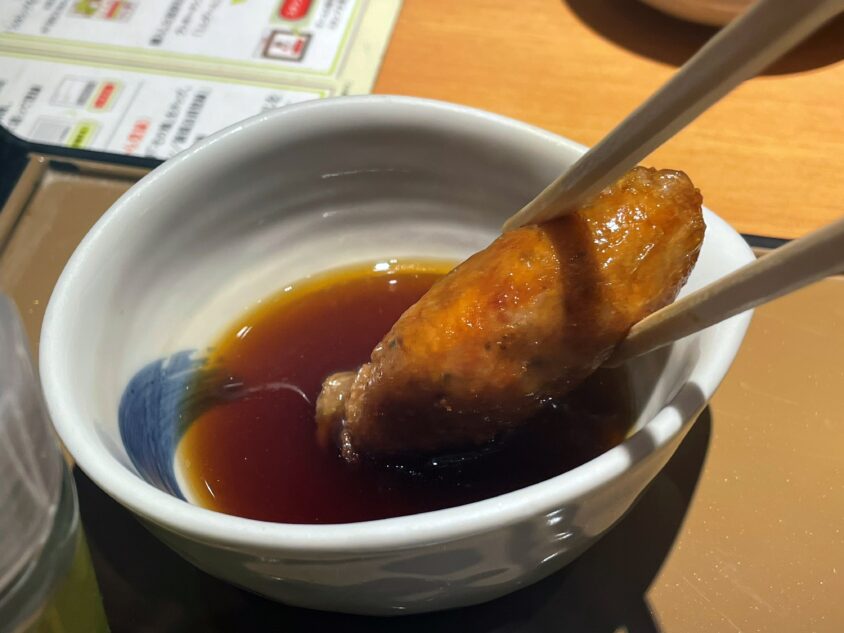 見た目は手羽先風なのに、中にはしっかり餡が詰まってるという意外性バツグンの一品。