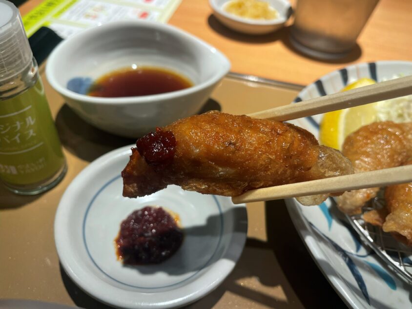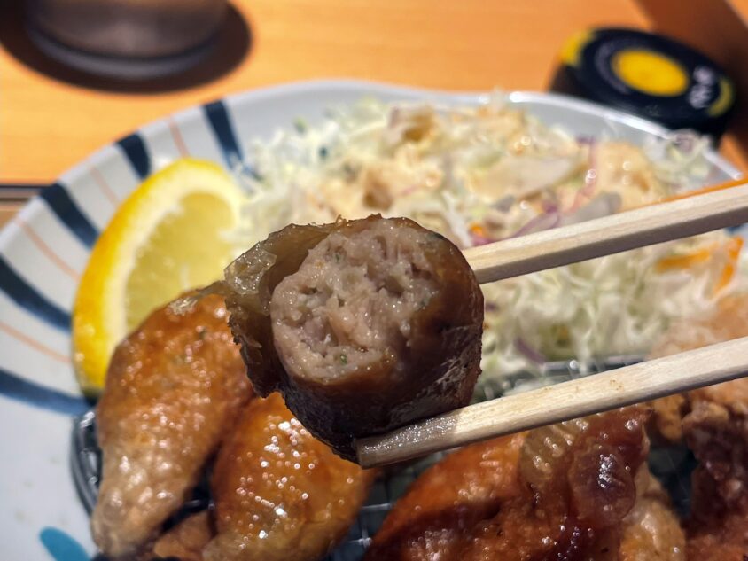外側はカリッカリに揚がった鶏皮、噛んだ瞬間にジュワッと肉汁があふれ出す…これは反則級。