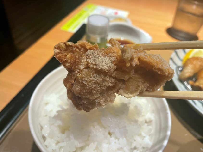 サクサクの衣の中には、ふんわり柔らかい鶏肉がギュッと詰まっていて、ご飯との相性は完璧!