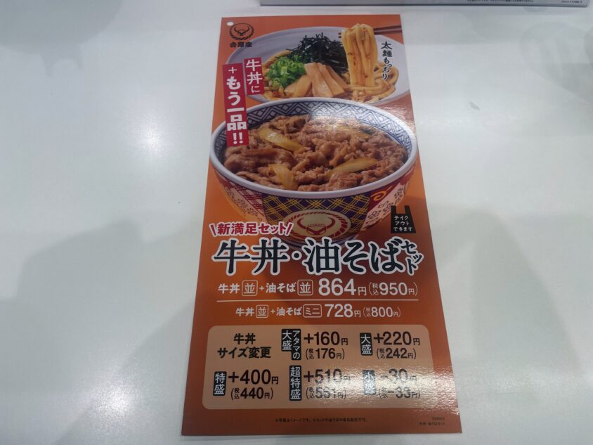 「牛丼・油そばセット」